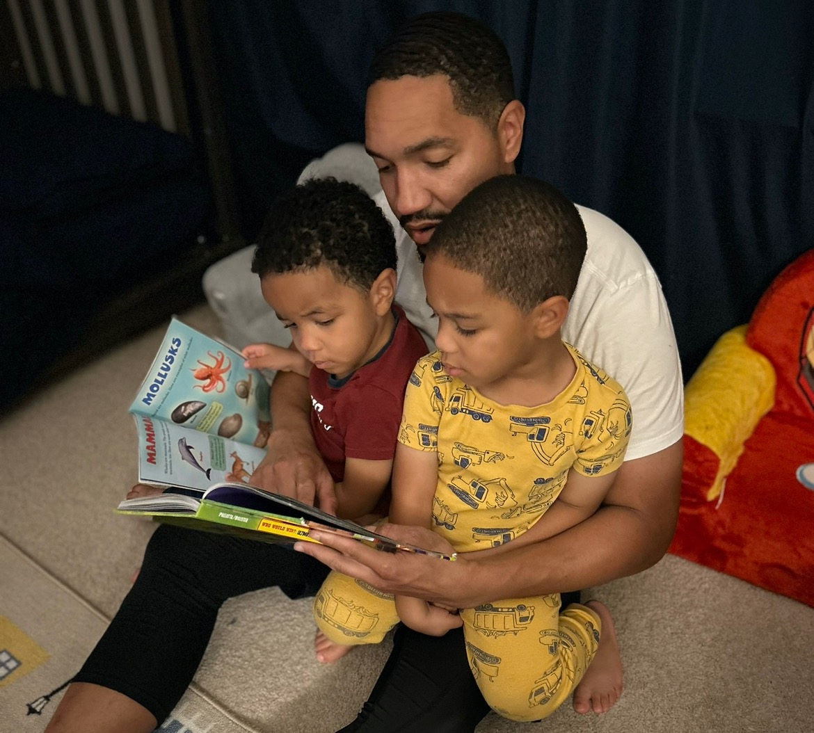 Kamieon looks for ways to keep his kids interested and engaged, remembering a period in his childhood during which he viewed reading as a chore, until he found books that piqued his interest and opened his eyes to the depth of the worlds available through books. He takes his toddler sons to Barnes and Noble to find new books they’re drawn to, and uses character voices and recreates scenes to bring the books to life.